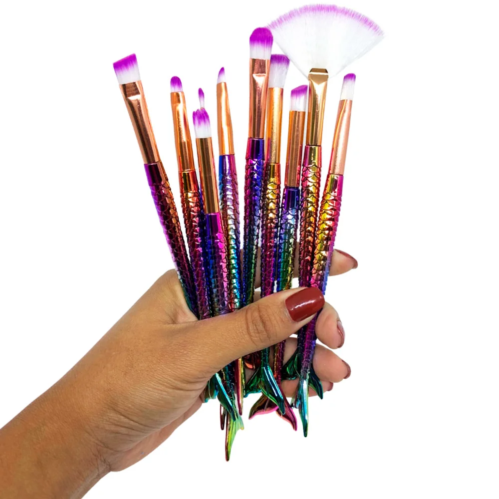 O é composto por 10 pincéis super macios e confortáveis de utilizar, que garantem um acabamento muito melhor para sua make. Além de ser um kit maravilhoso Pra aplicar a maquiagem, ainda deixará a sua penteadeira linda com um toque de decoração, pois possui um design exclusivo de calda de sereia!