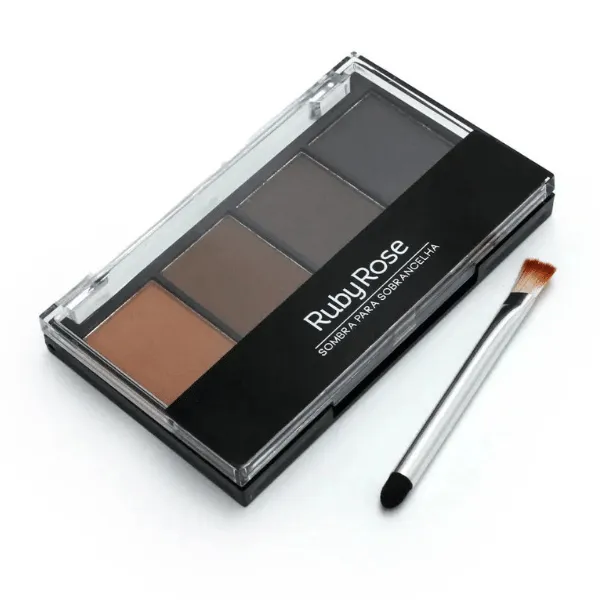 A Sombra Para Sobrancelhas da Ruby Rose tem uma alta pigmentação, contendo um espelho e três cores de sombras, Marrom Claro, Marrom Médio e Preto acompanhado por um primer para uma alta duração e fixação da sua maquiagem.